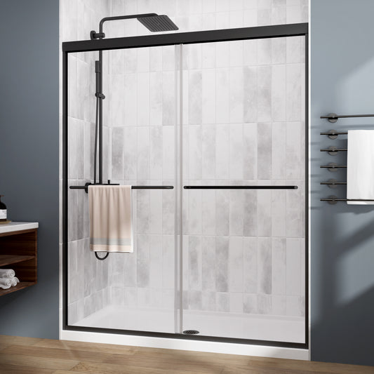 Royal Guard Double Sliding Shower Door,56-60" W x 70" H Semi-Frameless Sliding Glass Shower Door with 1/4'' (6mm) Clear SGCC Tempered Glass,Bypass Shower Enclosure,Matte Black