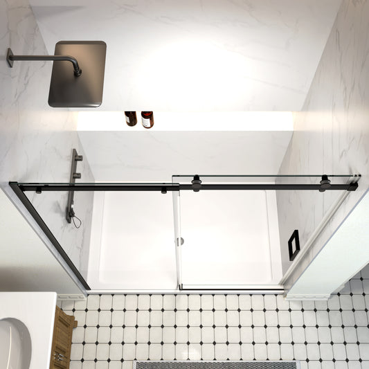 Shower Door,Royal Guard 56-60" W x 74" H Frameless Sliding Shower Door with 5/16" (8mm) Clear Tempered Glass,Matte Black Finish